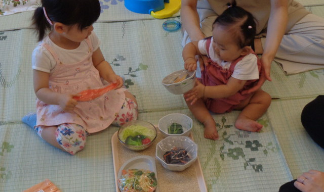 食生活の基礎として「楽しく食事をする」ということ、小さいうちから「薄味でバランスよく食べる事」などの大切さを教えて頂きました。実際にサンプルと一緒にご飯やおかずの量なども見せて頂いたのですが、「これ食べたい!」と興味を示してくれたお子さんもいました。